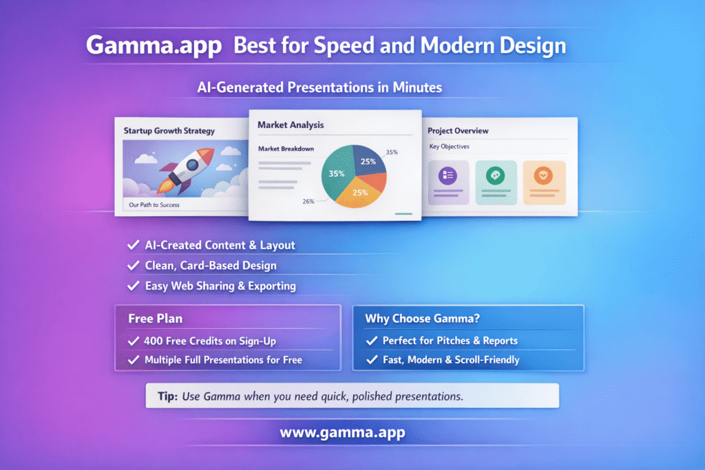 1. Gamma.app – Best for Speed and Modern Design