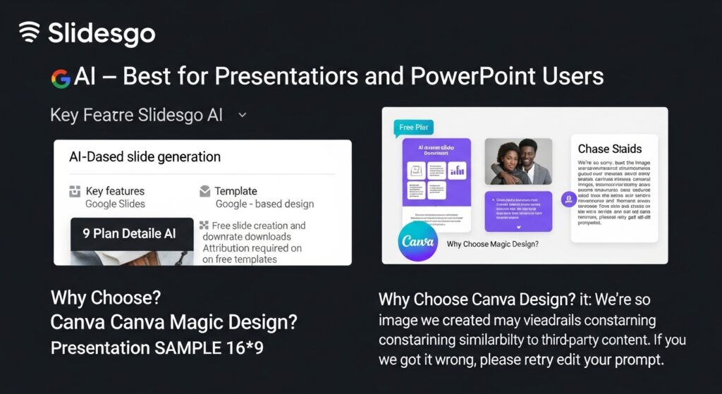 If your workflow already lives inside Google Slides or PowerPoint, Slidesgo AI fits naturally. You avoid learning a new platform while still getting AI assistance.