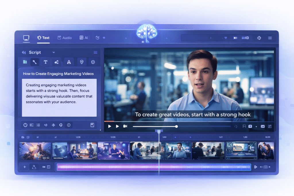 - Converts text into videos