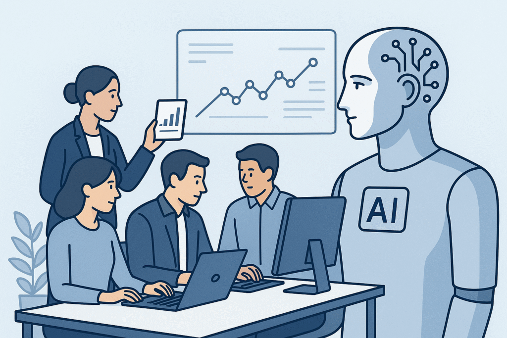 Artificial Intelligence means teaching computers how to perform tasks that usually need human thinking.